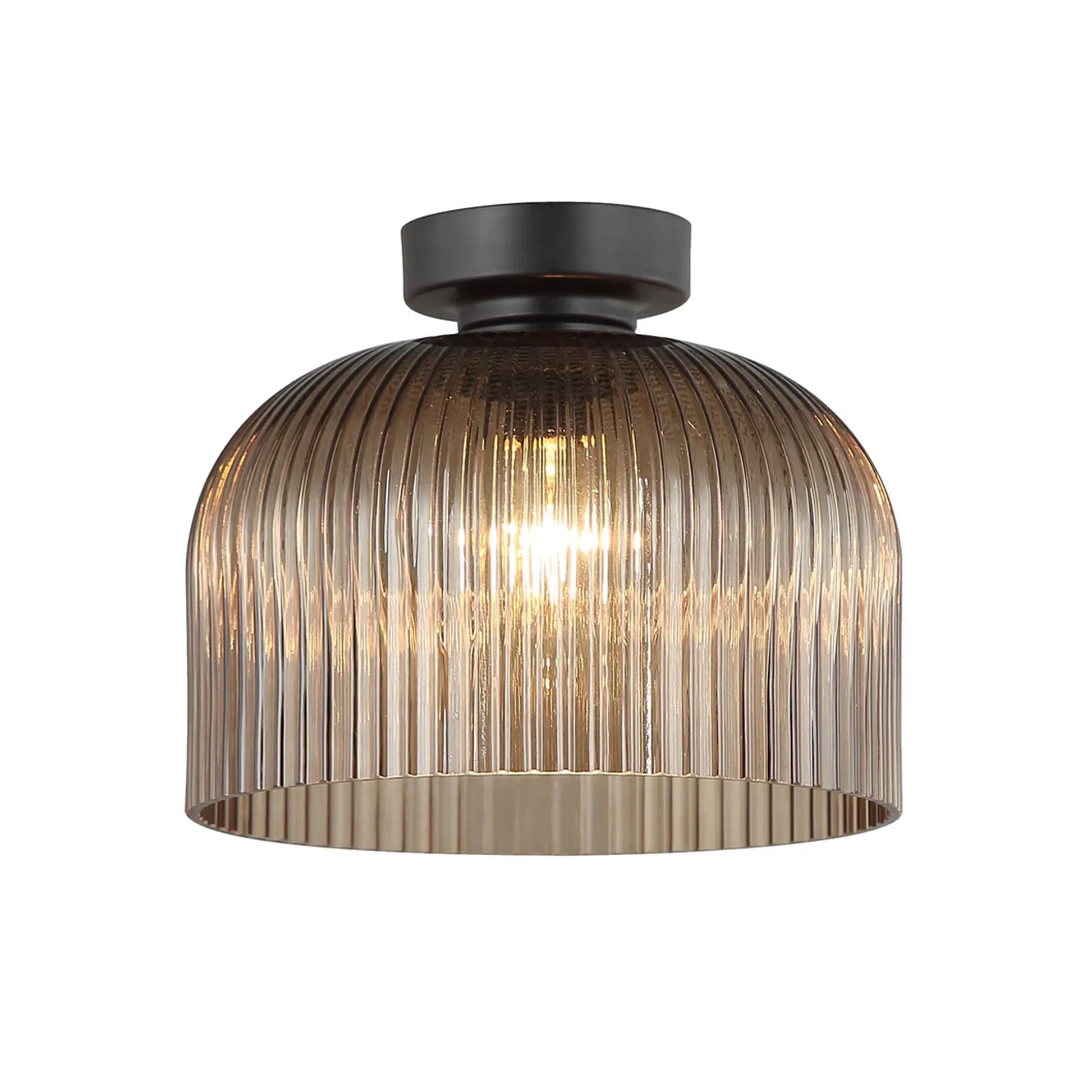DIY Dome Ribbed Glass Batten Fix Ceiling Light Amber