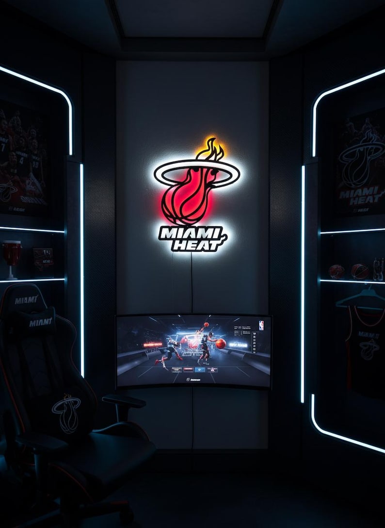 Miami Heat LED Wall Art - Team Logo Basketball Decor | Man Cave Game ...