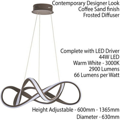 LED Ceiling Pendant Light 44W Warm White 630mm Brown Loop Feature Strip ...