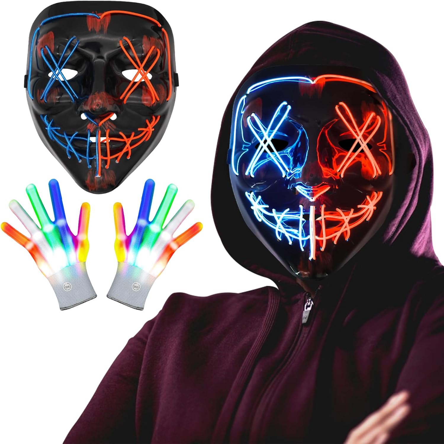 ORWINE Halloween LED Mask, Light Up Mask with Gesture Sensing ...