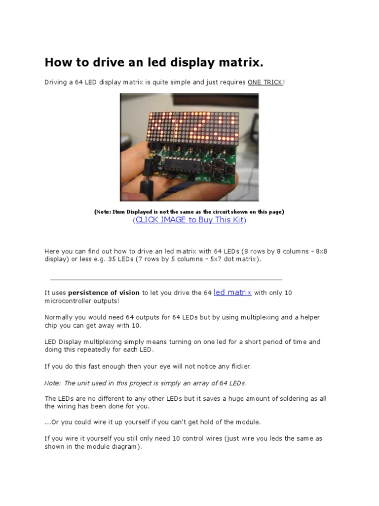 Driving an 8x8 LED Matrix Display | PDF | Light Emitting Diode | Pic ...