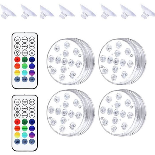 4PCS Lighting Submersible LED Light with Remote Control Multi Color ...