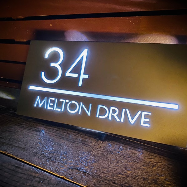 Modern Illuminated LED Backlit House Sign/Bespoke Address Plaque 15cm x ...