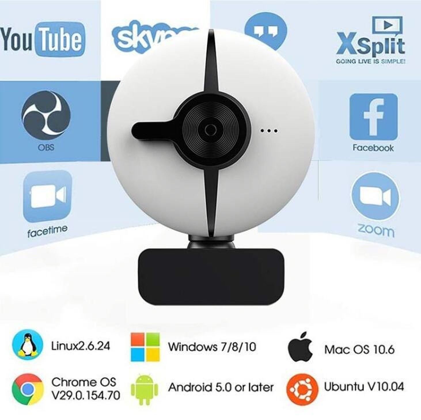 360 Degree Swivel LED Ring Light PC Camera USB Live Stream 1080P 2K ...