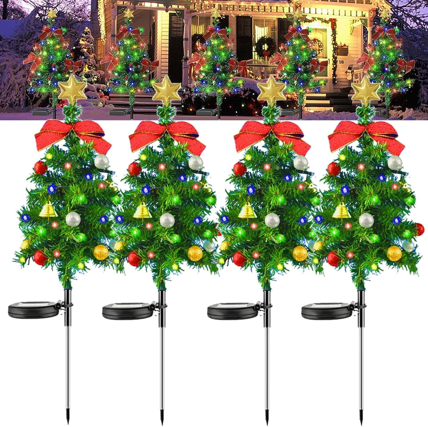 4 Pack Solar Small Christmas Trees Lights, LED Christmas Tree Outdoor ...