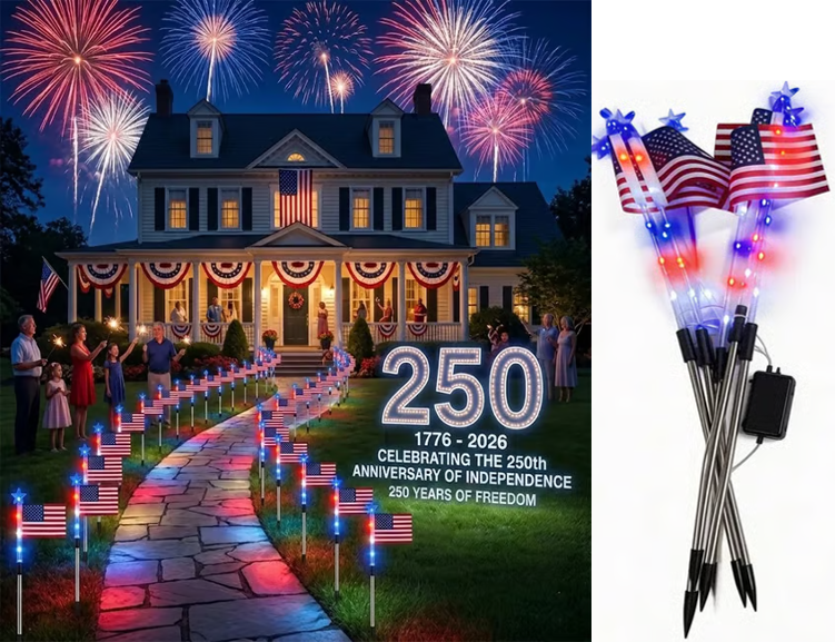 2026 Solar American Flag Pathway Stake Lights with 8 Modes - Patriotic ...