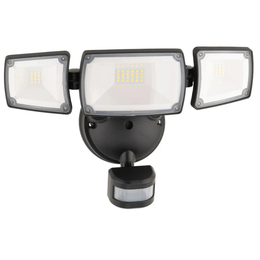 MXD6923BLK-SEN Mercator Onyx Triple Head 45W LED Security Light With ...