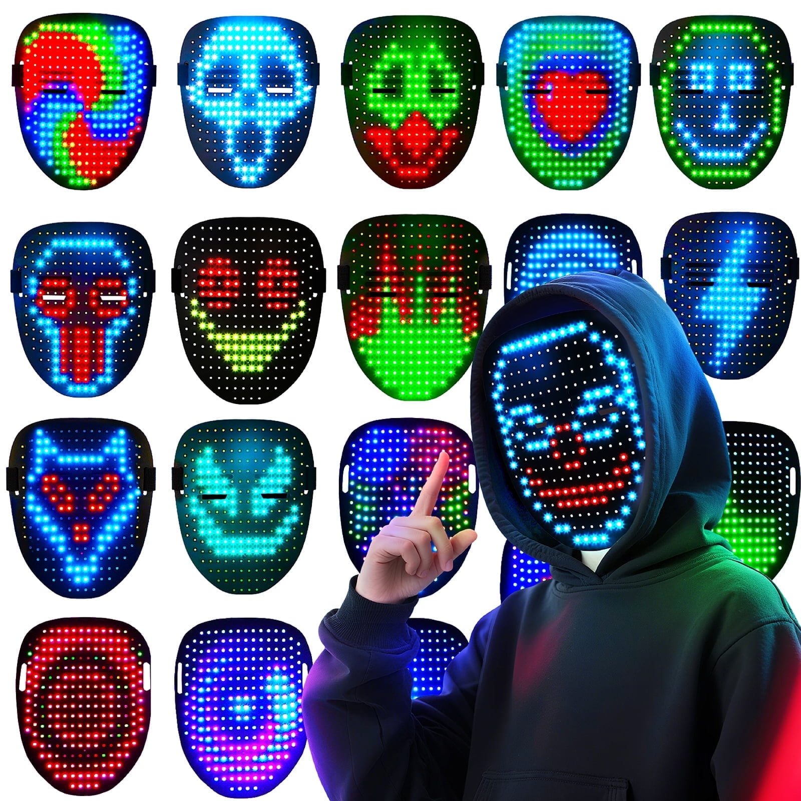 Rechargeable Face Transforming LED Mask with Gesture Sensing, App ...