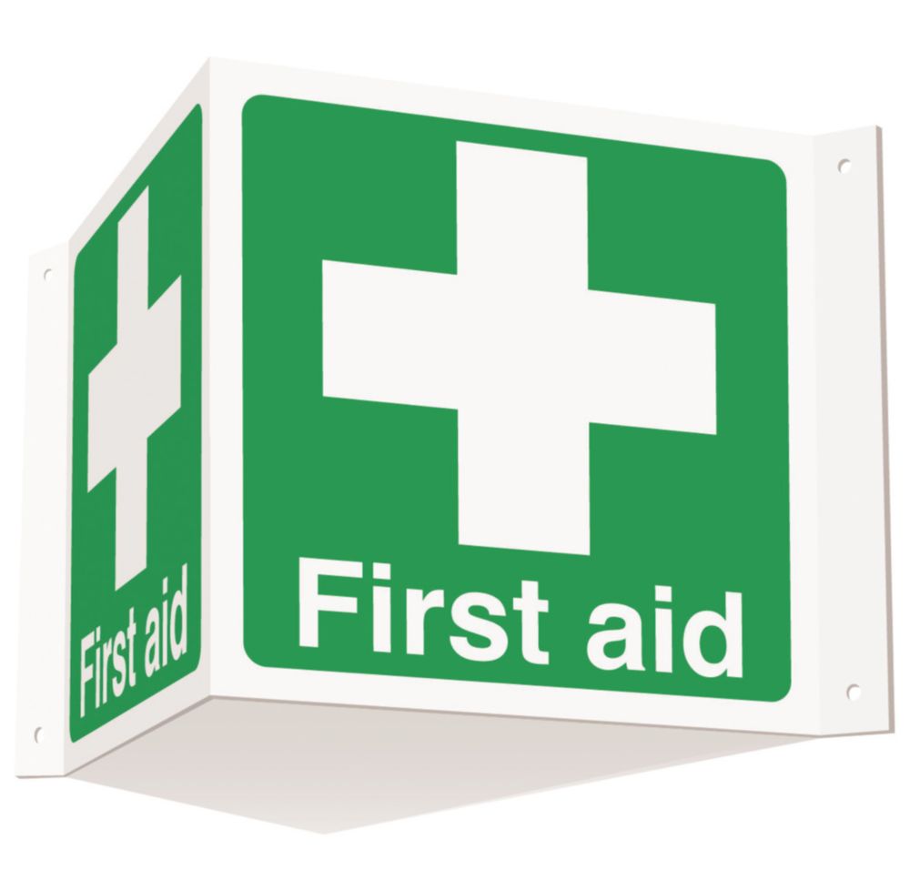 Projection Mount Safety Sign | Double Sided First Aid Sign