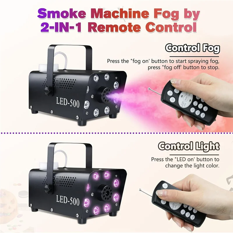 Remote Control Smoke Machine With 8 Colorful Led Lights, 500w Power And ...