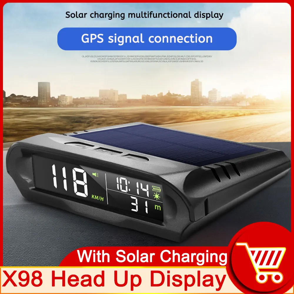 X98 Auto GPS Speedometer With Solar Charging Head Up Display Car Smart ...