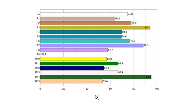 Relative distribution of different LED spectra (red, red/blue 3:1, blue ...