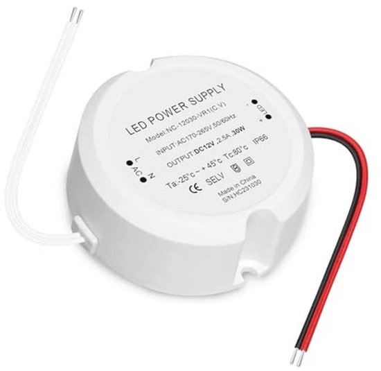 LED transformator 12V, ronde voeding 30W, IP66, 230V naar 12V, voor ...