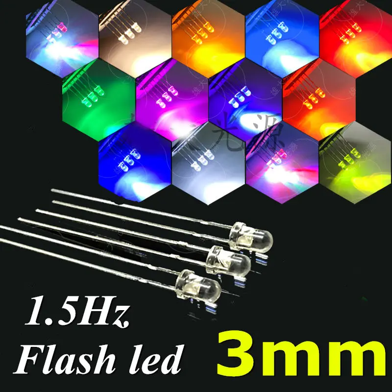 20Pcs 12V 5mm LED Diode Flash White Red Green Blue Yellow RGB Fast Slow ...