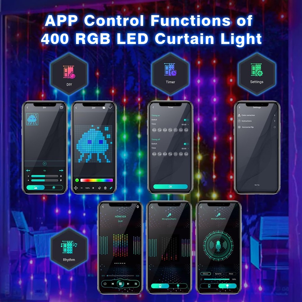 Programmable Smart Colorful LED Window Curtain Lights, IP65 400 RGB LED ...