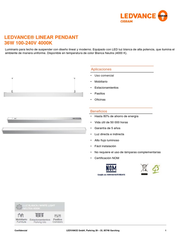 LEDVANCE ® LINEAR PENDANT 36W 100-240V LEDVANCE OSRAM – Luz y color