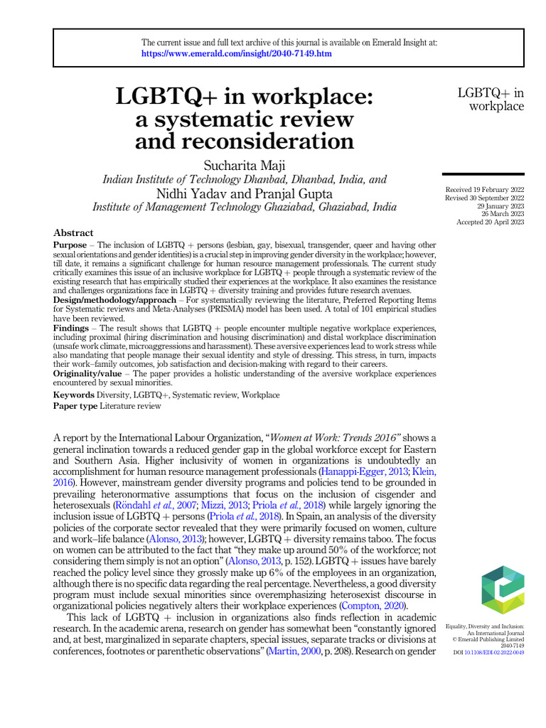 LGBTQ+ in Workplace - A Systematic Review and Resonsideration | PDF ...