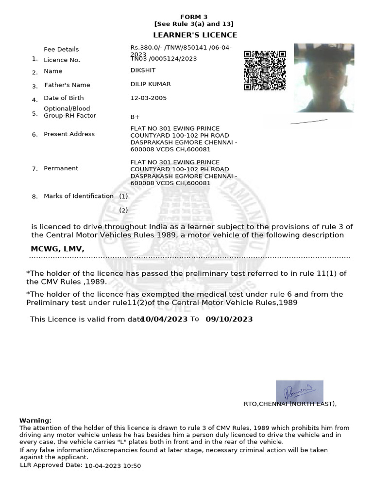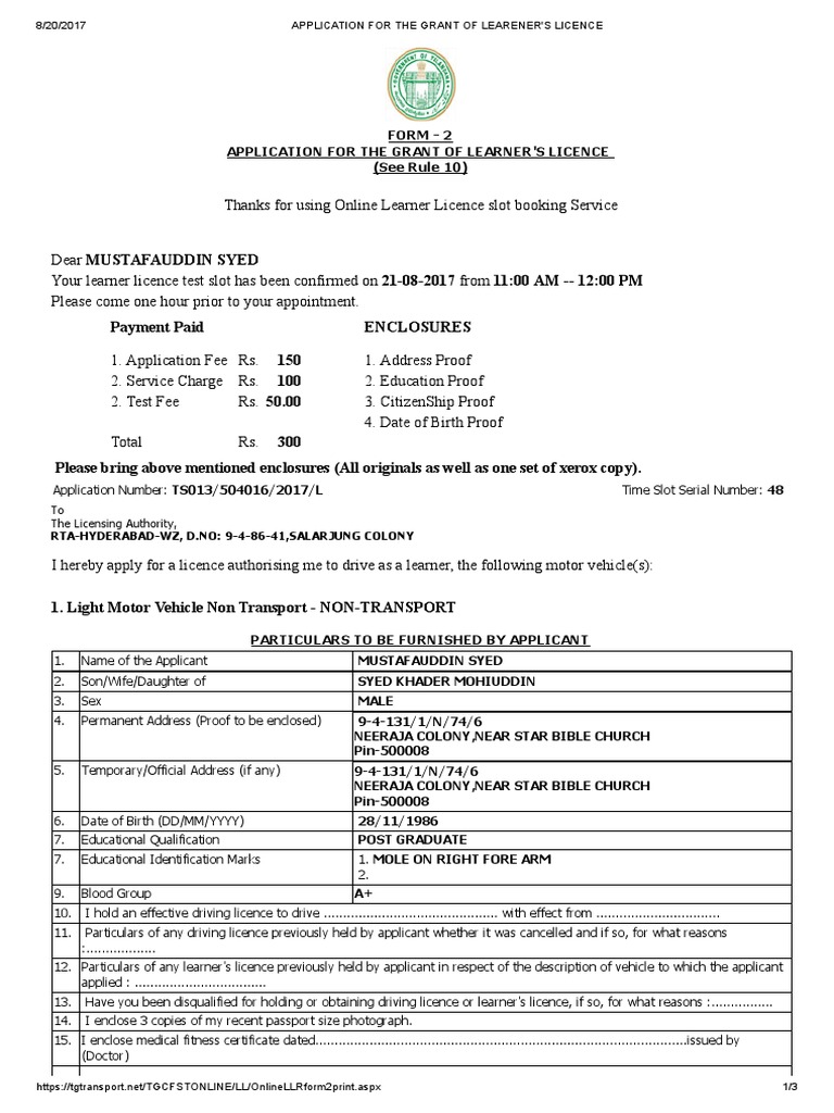 Learner's Licence Form 3 Details | PDF | Road Transport | Transport