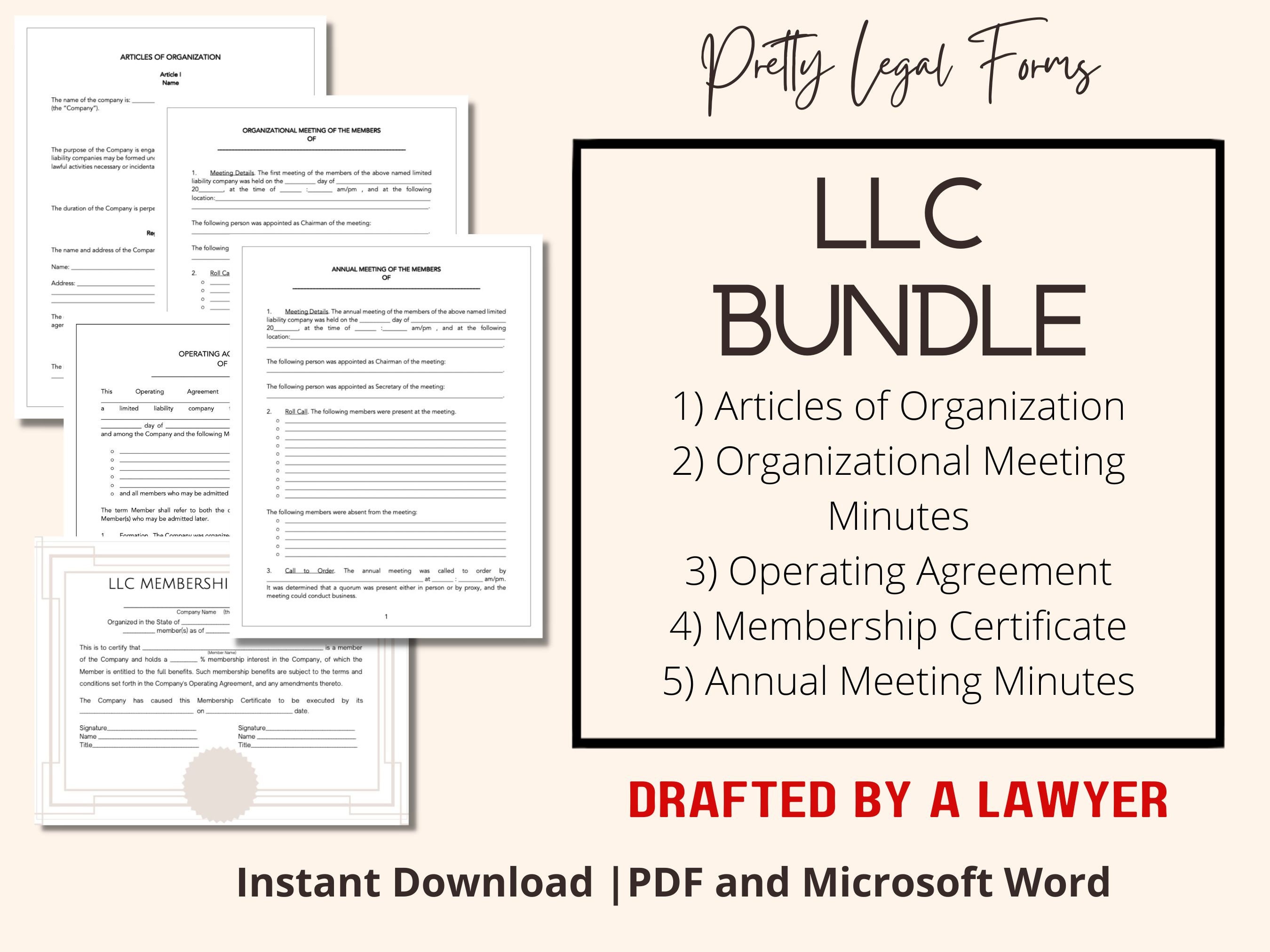 LLC Documents LLC Kit With Operating Agreement, Meeting Minutes ...