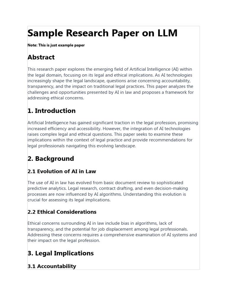 Sample Research Paper On LLM | PDF