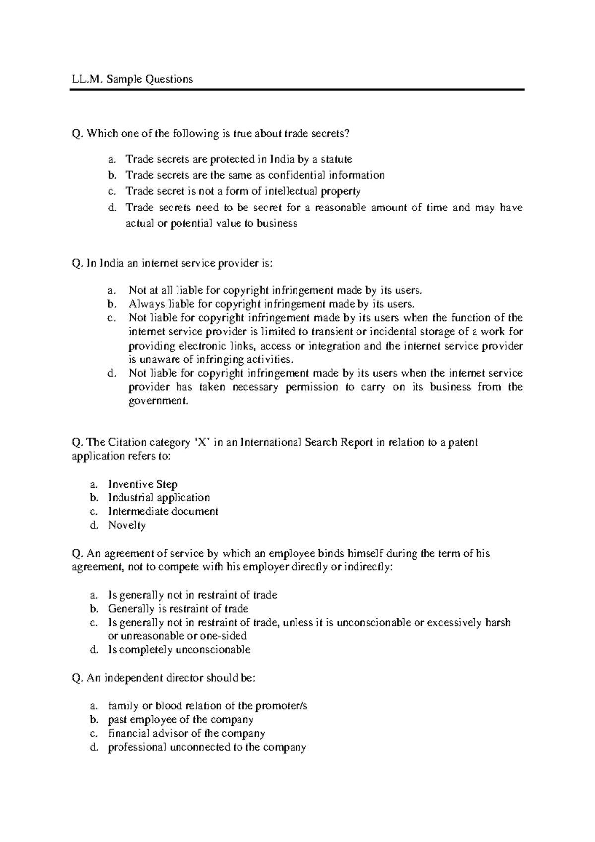 QP LLM Sample - LL. Sample Questions Q. Which one of the following is ...