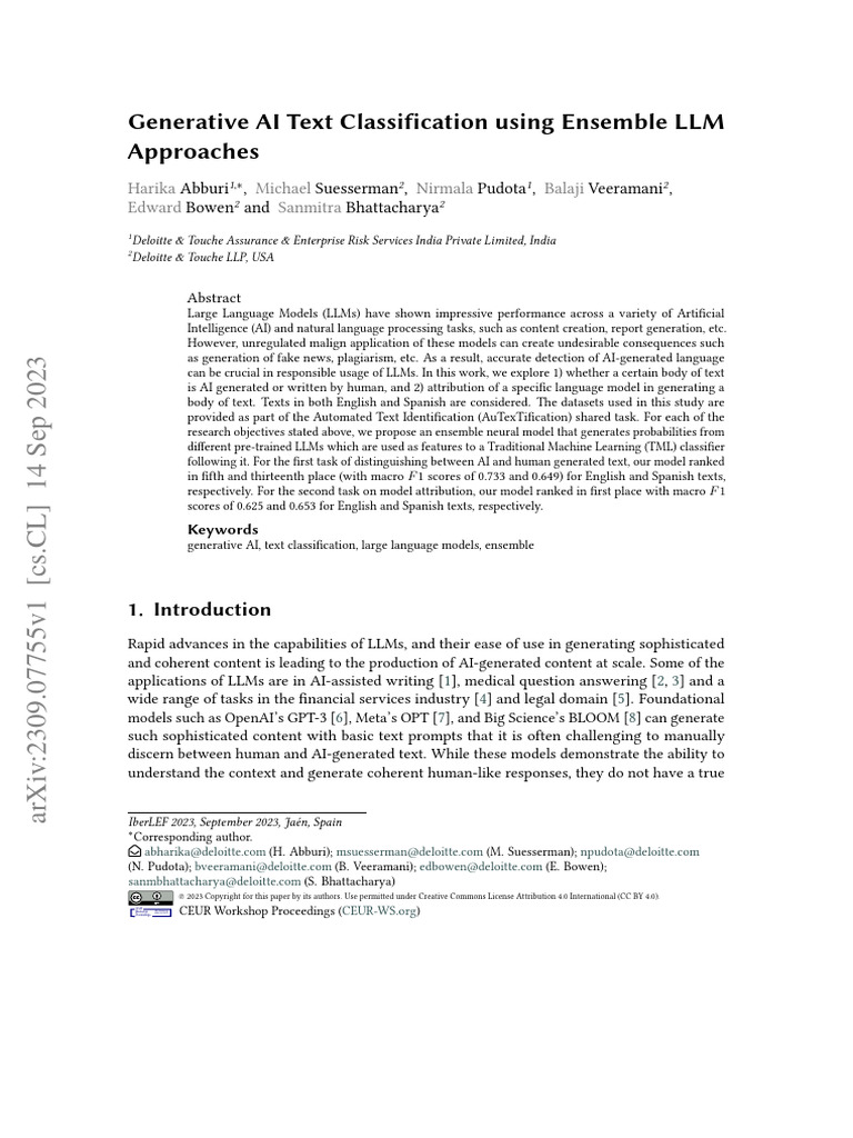 Generative AI Text Classification using Ensemble LLM Approaches | DeepAI