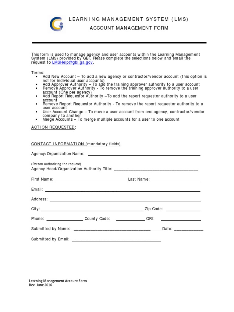 LMS Account Management Form PDF | PDF | Business | Finance & Money ...