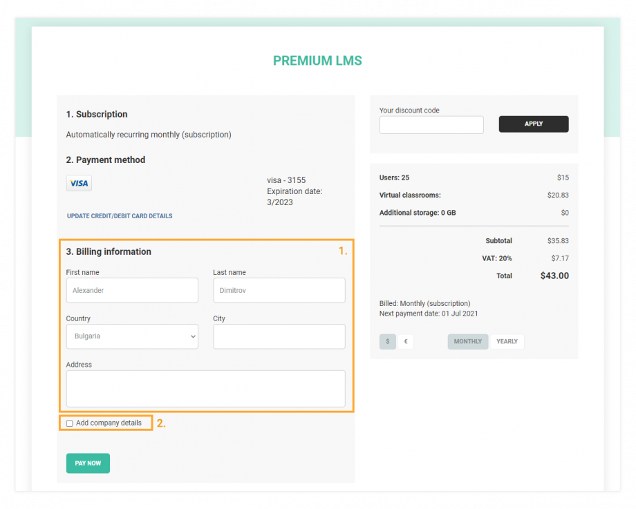 LMS Billing and Upgrade in a few easy steps | VEDAMO