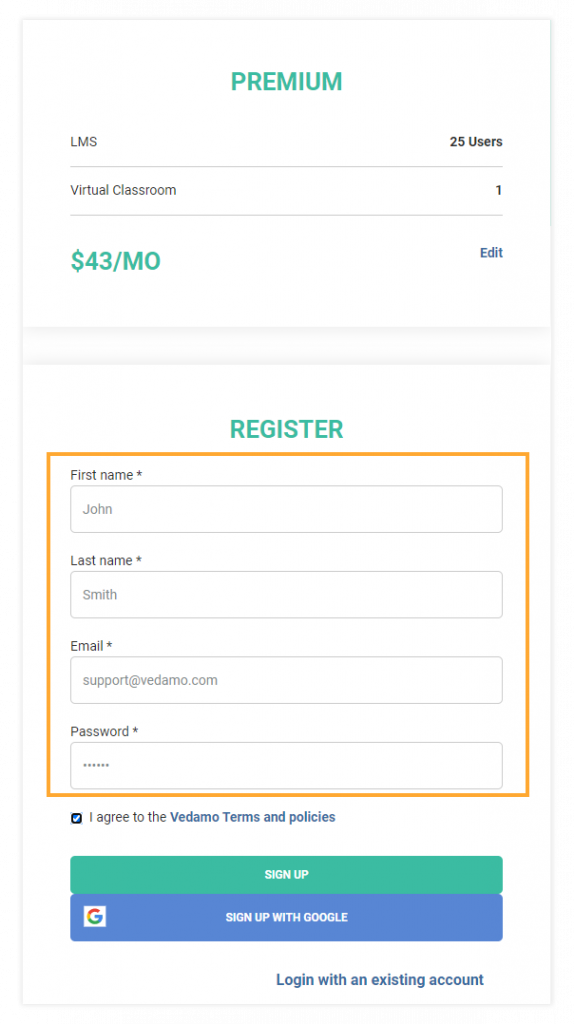 Premium LMS Subscription in a few easy step | VEDAMO