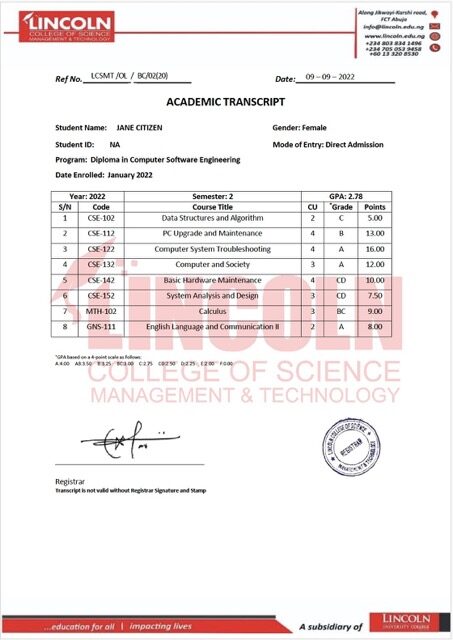Lincoln college of science management and technology academic ...