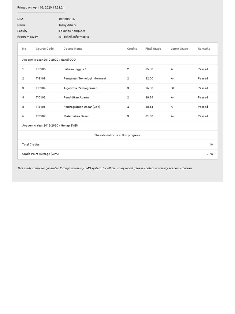 Official Transcript of Academic Record | PDF