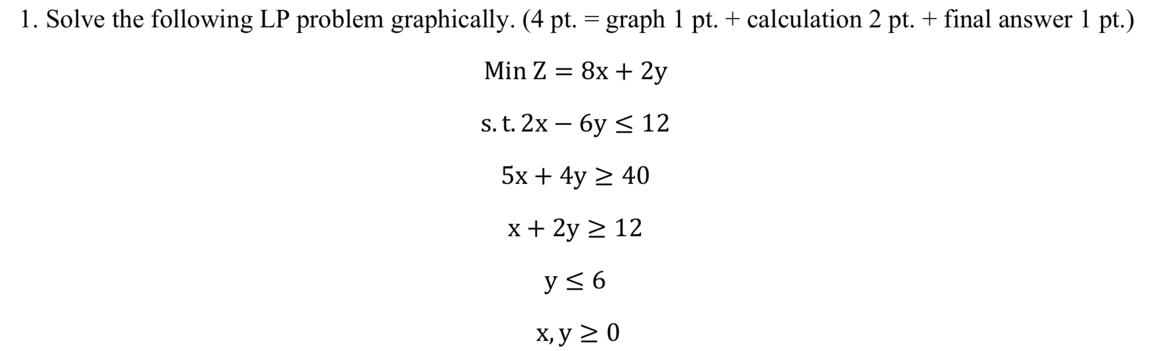 Solved 1. Solve the following LP problem graphically. (4 pt. | Chegg.com