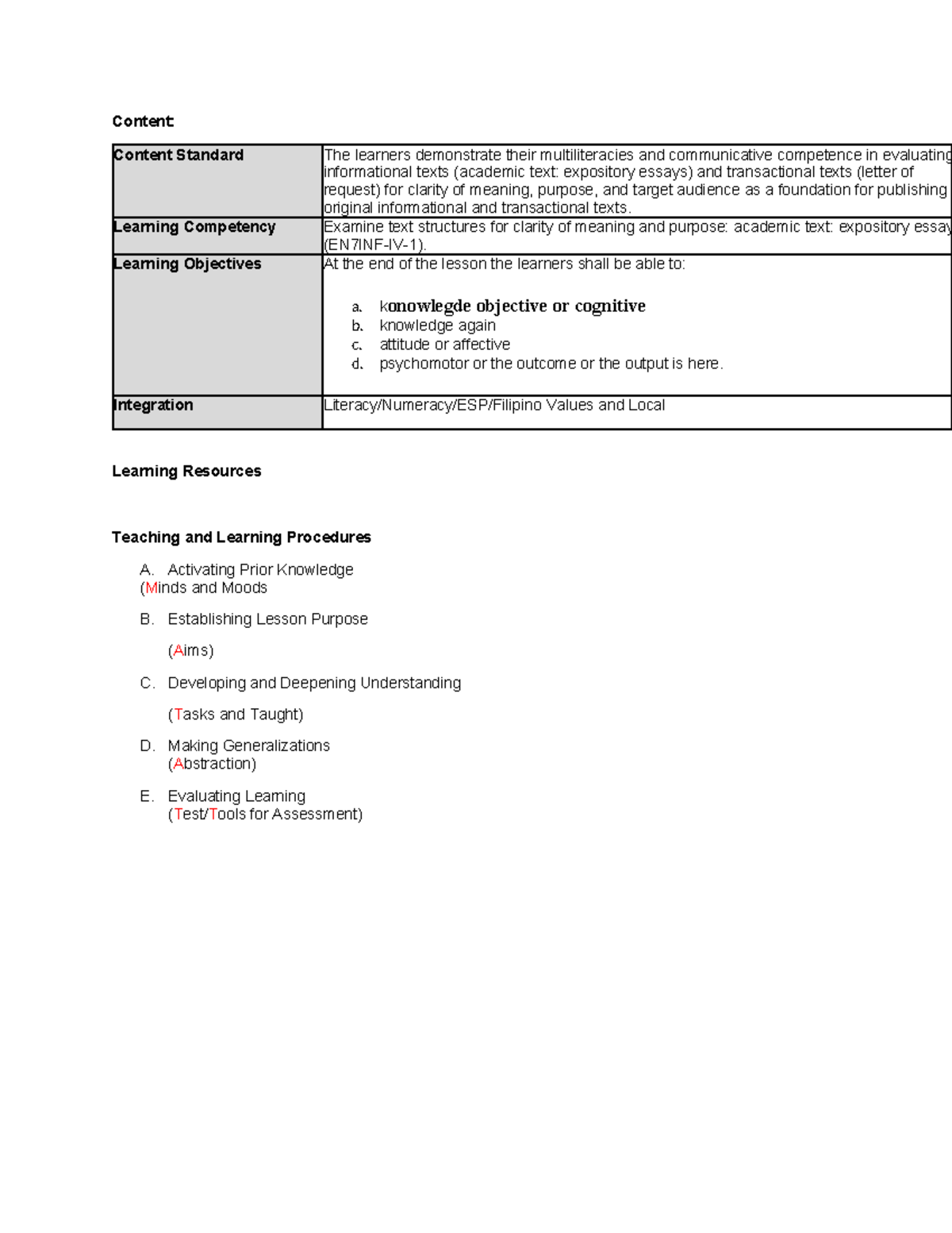 LP Procedures - Learning Competencies in Multiliteracies - Studocu
