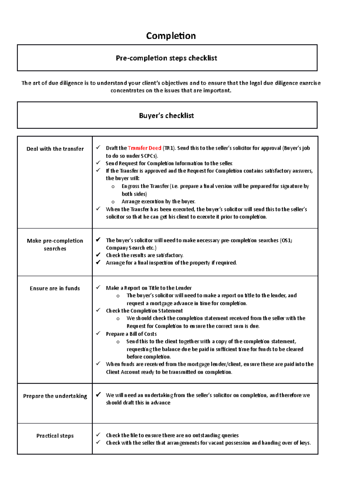 LPC RE WS8 9 Workshop Notes: Pre-Completion and Completion Checklists ...