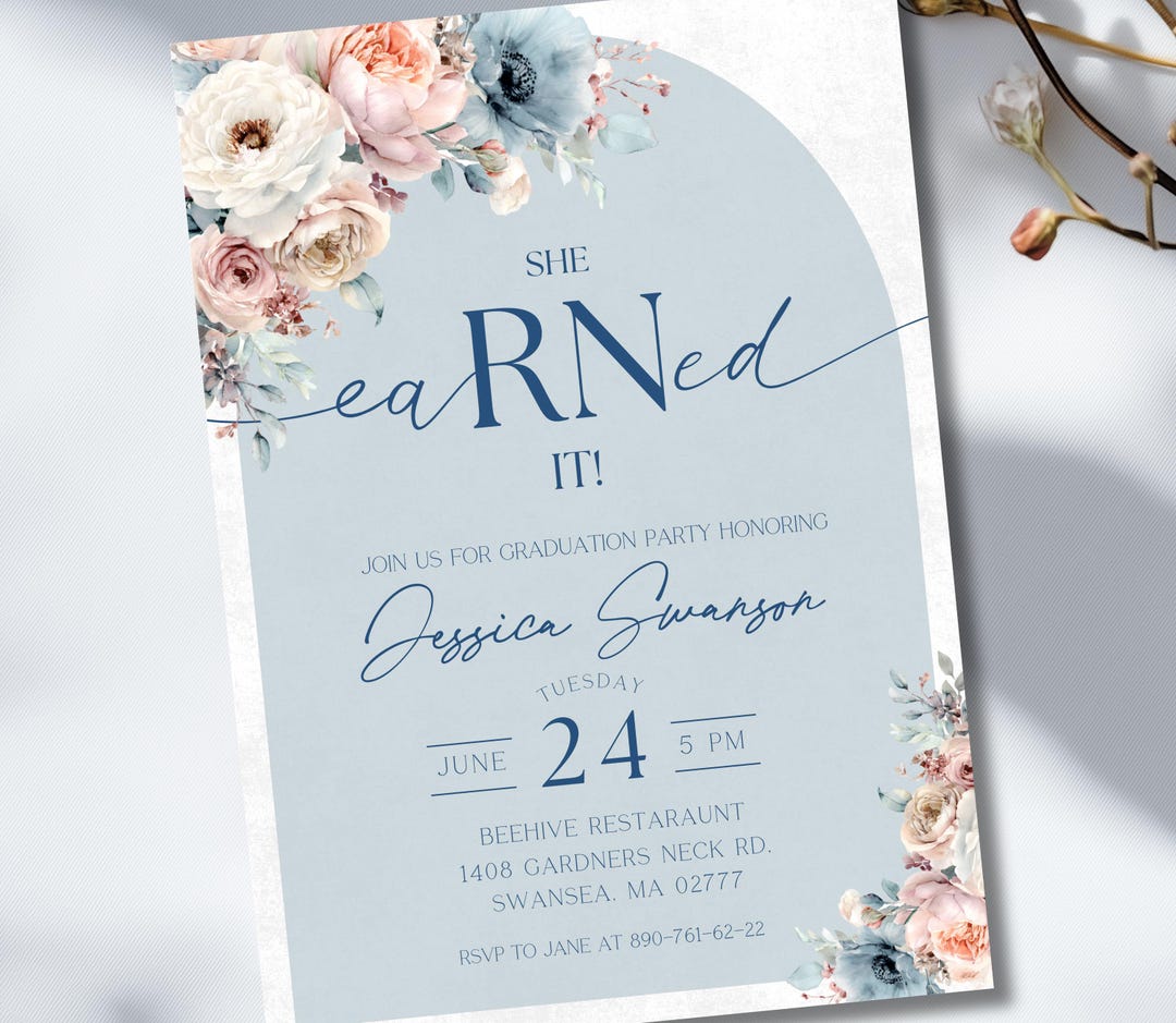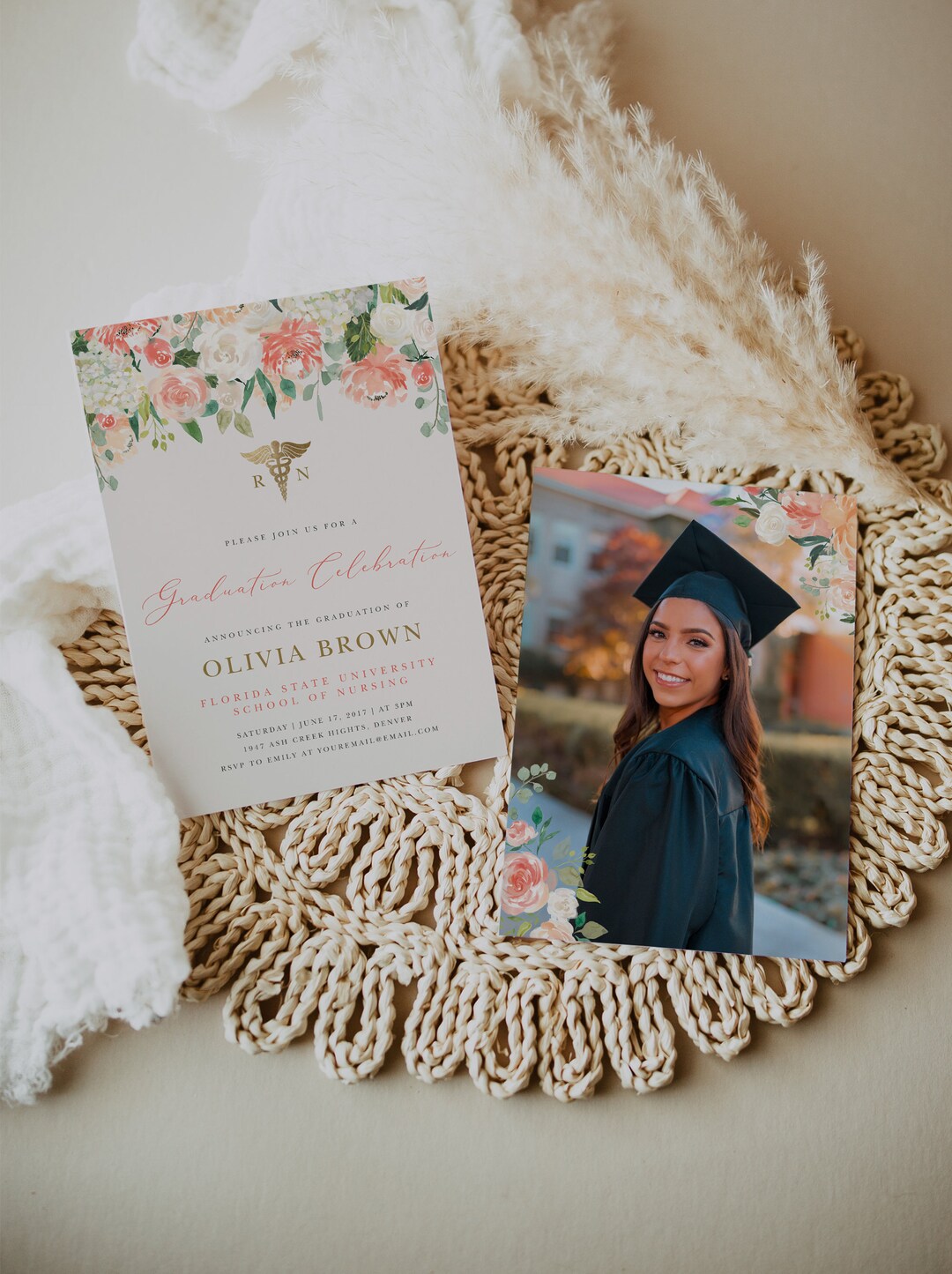 Floral Nursing Graduation Invitation Template, Graduation Celebration ...