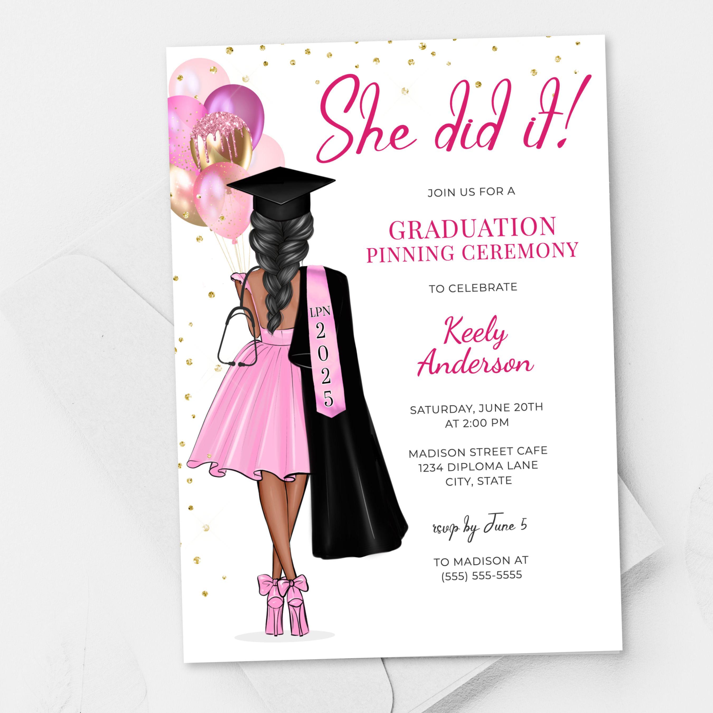 Editable LPN Graduation Pinning Ceremony Invitation, She Did It Nurse ...