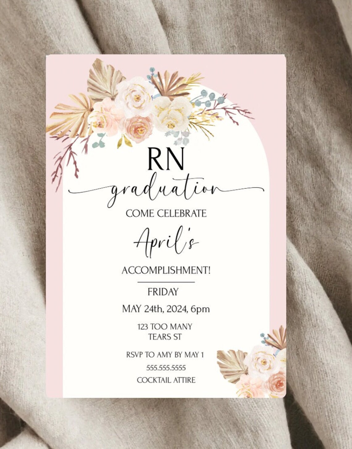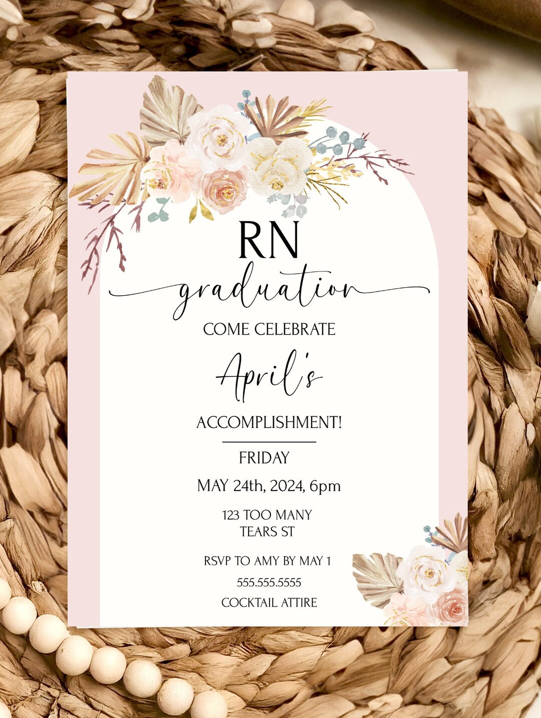 Boho Nurse Graduation Invitations- RN Class of 2024- LPN Pinning ...