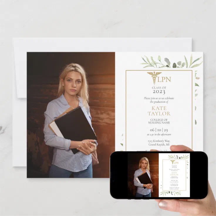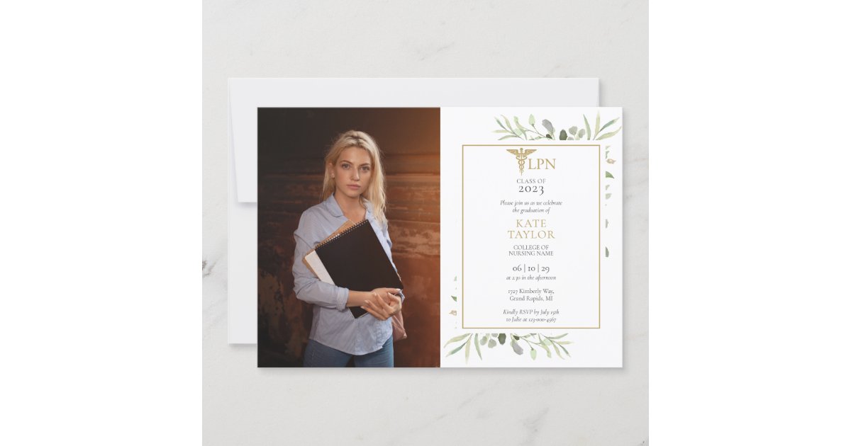 LPN Nursing Graduation Greenery Photo Invitation | Zazzle