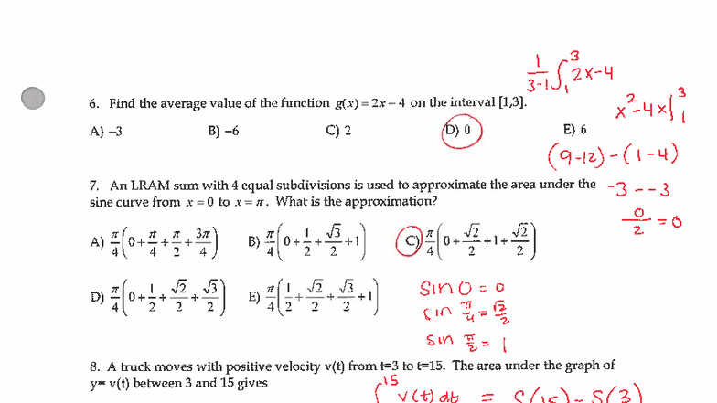 Calculus 2 (DOC231) - Average Value & LRAM Area Approximation - Studocu