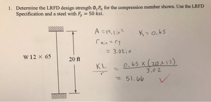 Solved 1. Determine the LRFD design strength, ϕPn, using 1) | Chegg.com