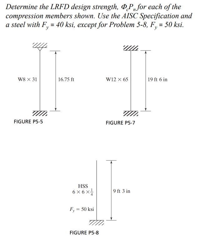 Solved 5-5 to 5-8. Determine the LRFD design strength, ФcPn, | Chegg.com