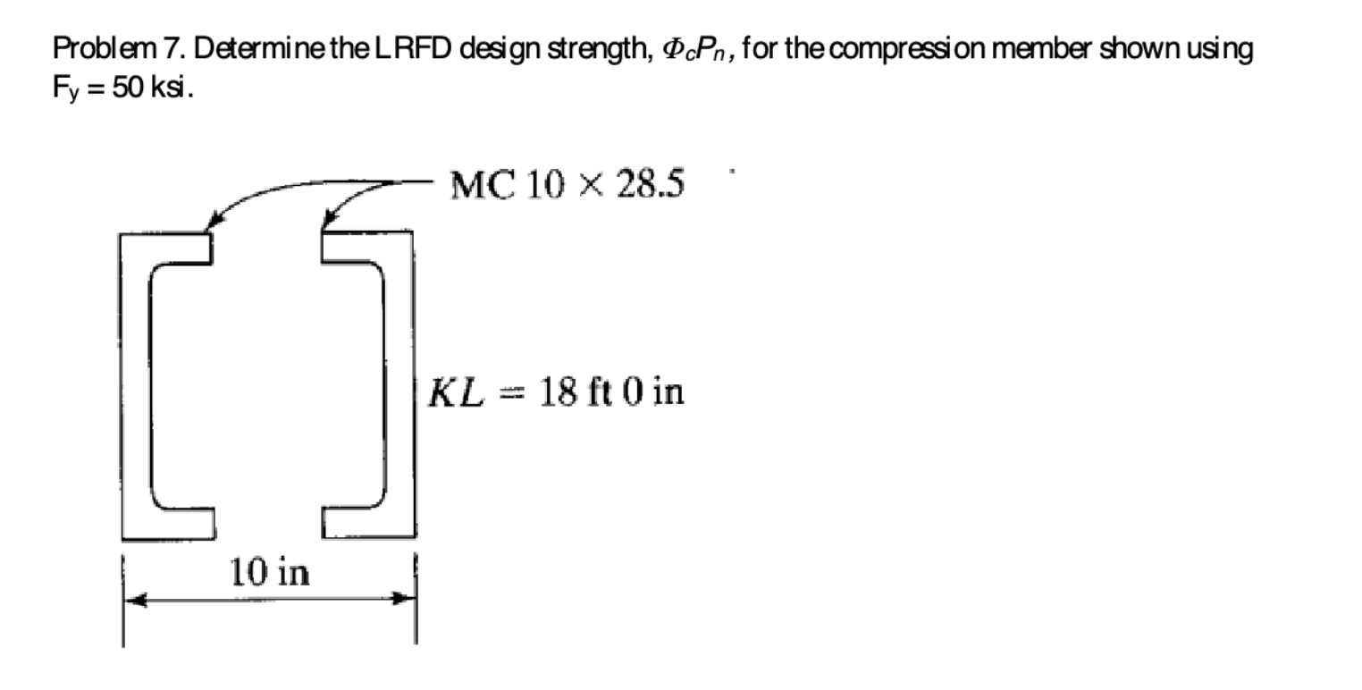 Solved Problem 7. Determine the LRFD design strength, ΦcPn, | Chegg.com
