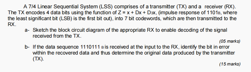 A 7/4 Linear Sequential System (LSS) comprises of a | Chegg.com