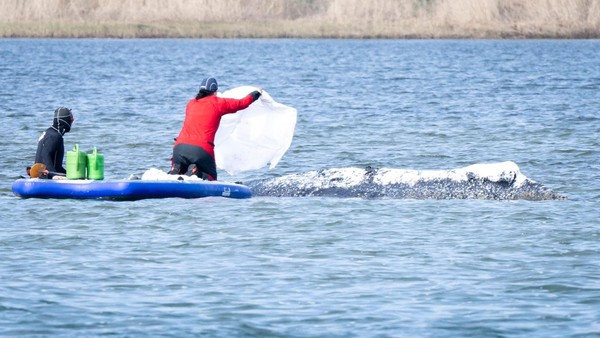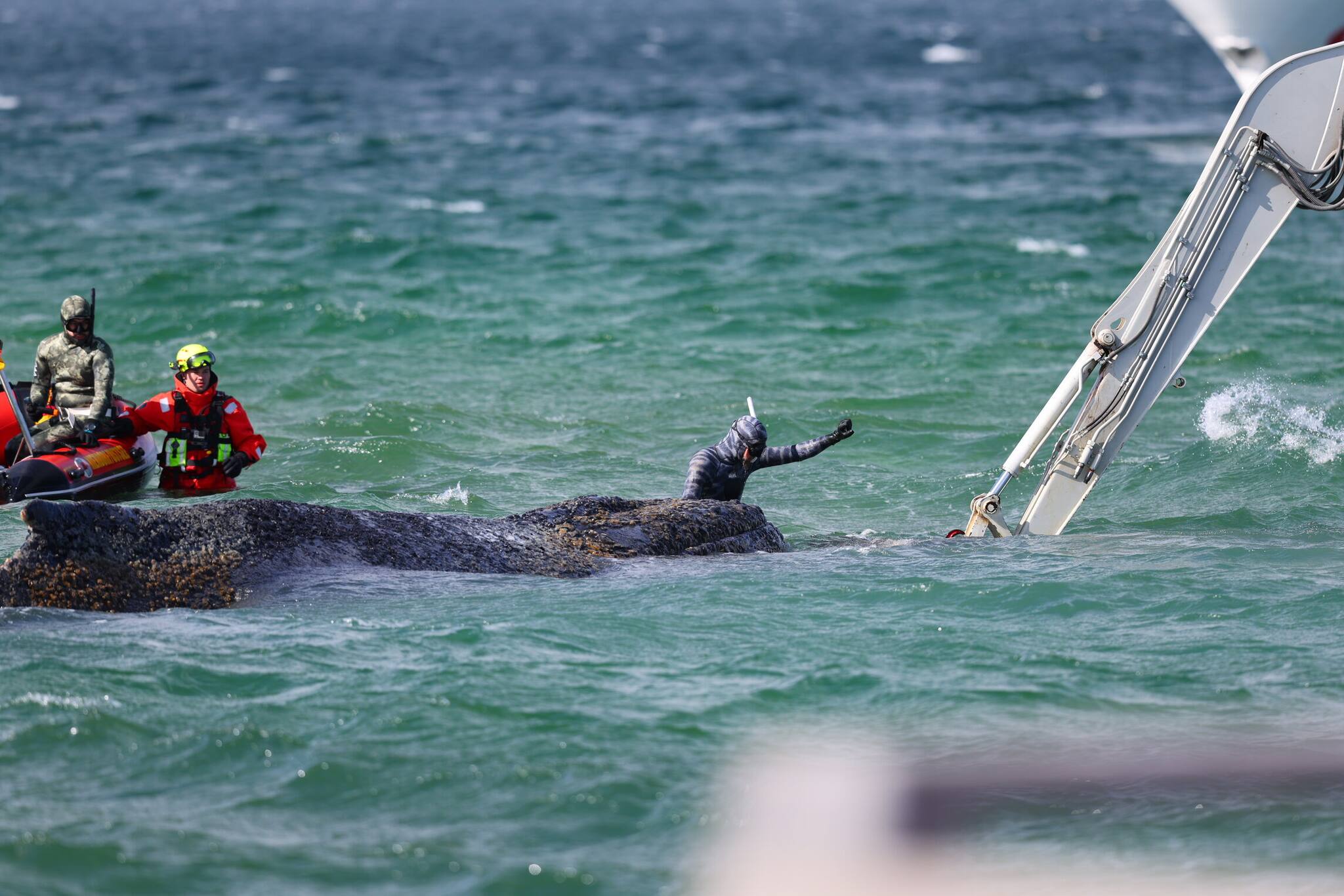 Ostsee-Wal: Minister Backhaus beim Wal ++ Bagger graben weiter Rinne