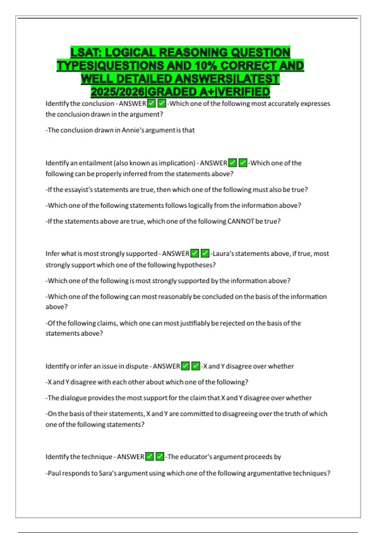 LSAT Logical Reasoning Question Types with correct answers 2023 - LSAT ...