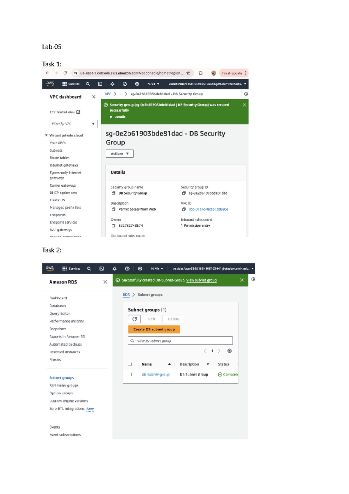 Lab05 cloud - lsb - Task 1: t C Finish update : aws Services N. Vir 1 ...