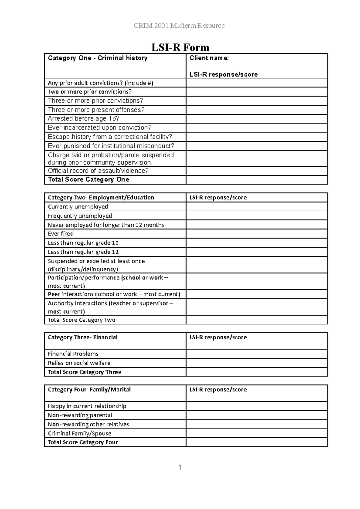 CRIM2001-1-1 - Case Report - LSI-R Form Category One - Criminal history ...