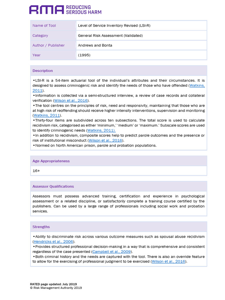 Comprehensive Overview of LSI-R Assessment Tool | Course Hero