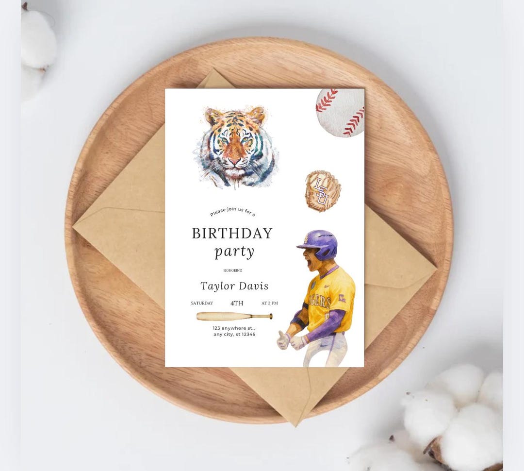 LSU Baseball Birthday Party Invitation Template, Colorful Party Invite ...