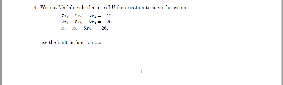 1 write a matlab code to solve the following system of linear equations ...